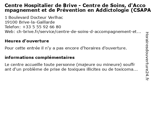 Termes de recherche pour Centre Hospitalier de Brive - Centre de Soins, d'Accompagnement et de Prévention en Addictologie (CSAPA):en, et, de, brive, centre, soins, hospitalier, prévention, addictologie, csapa, d'accompagnement |