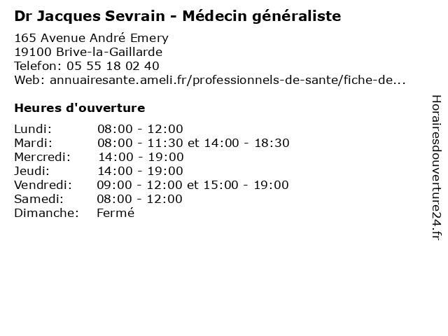 | Mardi | 08:00-11:30 et 14:00-18:30 |