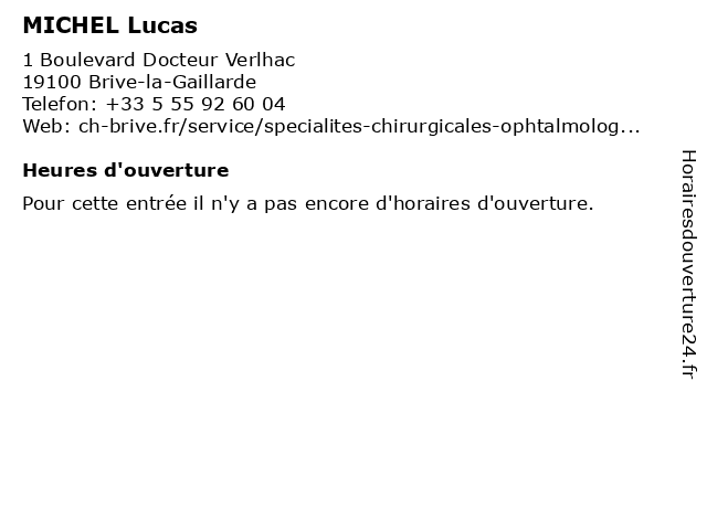 3 Dr Michel Lubeau - Neurologue (Distance: 0,30 km) 17 Avenue Maillard, 19100 Brive-la-Gaillarde cerveau, dr, lubeau, michel, nerf, neurologie, neurologue 4 Dr Michel Suberville - Chirurgien urologique (Distance: 0,54 km) 12 boulevard Paul Painlevé, 19100 Brive-la-Gaillarde brive, chirurgien, chiurgie, clinique, dr, general, germain, michel, saint, soins, suberville, urologique 5 Médiathèque Michel Dumas aux Chapélies (Distance: 1,97 km) - Place Nelson Mandela, 19100 Brive-la-Gaillarde aux, cd, chapélies, dumas, dvd, jeux videos, livres, michel, médiathèque, revues 6 Dr Lucas Michel - ORL (Distance: 2,52 km) - Impasse des Cèdres, 19100 Brive-la-Gaillarde consultation, docteur, dr, lucas, med, michel, médecin, médecine, orl, traitement |