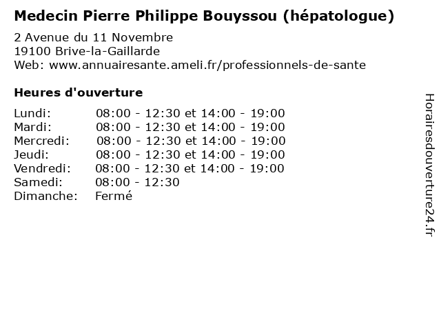 | Jeudi | 08:00-12:30 et 14:00-19:00 |