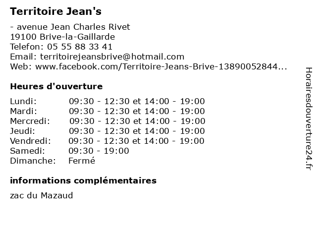 1 Le 400 - Tiers Lieu - Fabrique du Territoire (Distance: 2,80 km) 12 Place Jean Marie Dauzier, 19100 Brive-la-Gaillarde 400, coworking, du, fabrique, image, le, le 400, lieu, médias, numérique, territoire, tiers, tiers-lieu 2 Territoire Jean's (Distance: 23,74 km) 64 Avenue Victor Hugo, 19000 Tulle accessoires, boutique, jean's, mode, territoire, textile, vetements 3 Dordogne Habitat - Territoire Sud-Est (Distance: 37,23 km) 35 avenue Thiers, 24206 Sarlat La Caneda dordogne, dordogne habitat, est, habitat, informations, logement, recherche, sud, territoire 4 Aubert (Distance: 0,01 km) . Avenue Jean Charles Rivet, 19100 Brive La Gaillarde accesories, aubert, bebe, chambre, deco, mode 5 Opticien Brive-La-Gaillarde | Alain Afflelou (Distance: 0,23 km) 14 Avenue Jean-charles Rivet, 19100 Brive-La-Gaillarde afflelou, alain, brive, gaillarde, la, magasin de lunettes de soleil, magasin d’accessoires de mode, opticien, optométrie 6 Tape à l'oeil - Brive (Distance: 0,24 km) Avenue Jean Charles Rivet, 19100 Brive brive, l'oeil, magasin de vêtements pour bébés, mode, tape |
