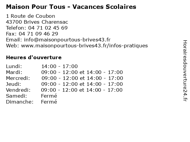 | Mardi | 09:00-12:00 et 14:00-17:00 |