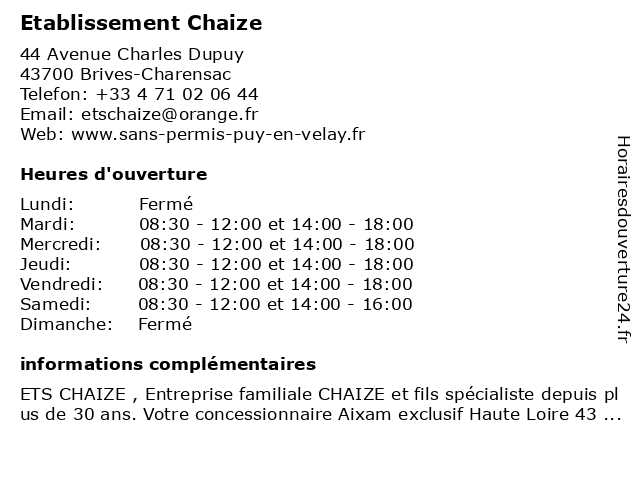 Termes de recherche pour Etablissement Chaize:chaize, etablissement |
