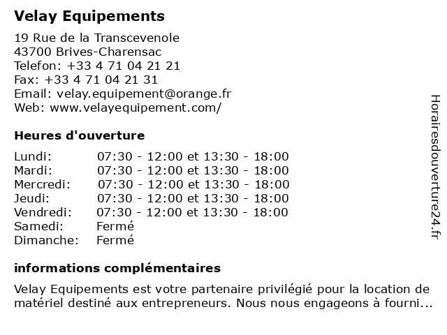 Termes de recherche pour Velay Equipements:velay, equipements |