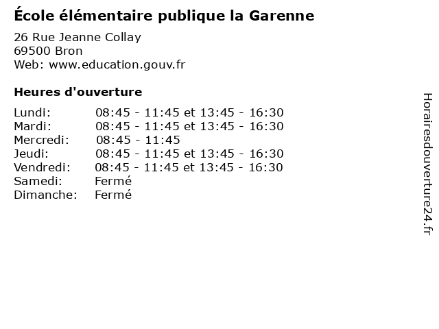 | Lundi | 08:45-11:45 et 13:45-16:30 |