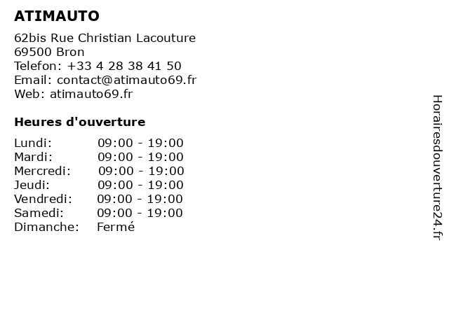 | Lundi | 09:00-19:00 |