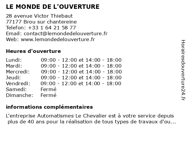 | Lundi | 09:00-12:00 et 14:00-18:00 |