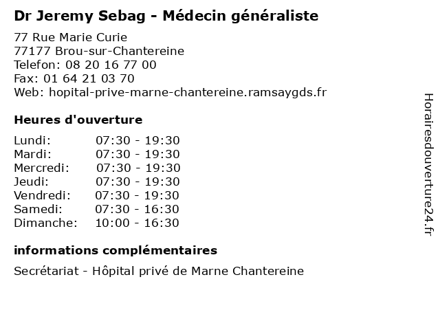 1 Dr Jeremy Sebag - Médecin généraliste (Distance: 17,01 km) 224 Rue de Belleville, 75020 Paris consultation, docteur, dr, généraliste, jeremy, med, médecin, sebag, traitement 2 Joffe Jeremy Jackie Patrice (Distance: 6,40 km) 59 b Rue De Ruze, 77270 Villeparisis jackie, jeremy, joffe, patrice, restaurants 3 Dr Jeremy Abitbol - Chirurgien-dentiste - secrétariat (Distance: 7,13 km) 460 Avenue du 8 Mai 1945, 93330 Neuilly-sur-Marne abitbol, chirurgien, chirurgien-dentiste, dentiste, dr, jeremy, médecins, médicaments, santé, secrétariat, spécialiste 5 Moutou Jeremy (Distance: 12,04 km) Monsieur Jeremy Moutou, 94120 Fontenay Sous Bois jeremy, moutou, restaurants 6 Jeremy Cohen - Ostéopathe (Distance: 13,59 km) 13 Rue Clément Vienot, 94300 Vincennes care, clinic, cohen, dentist, france, gynécologue, health, jeremy, kinesitherapeute, ophtalmologiste, orl, ostéopathe, psychologue, service |