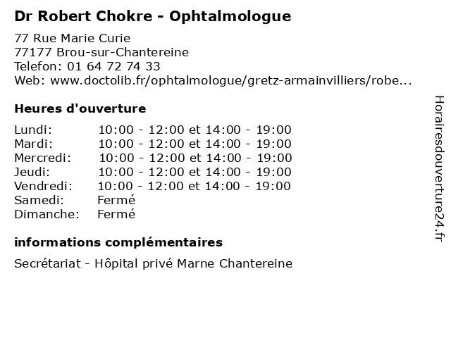 | Lundi | 10:00-12:00 et 14:00-19:00 |