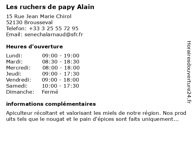 | Dimanche | Fermé |