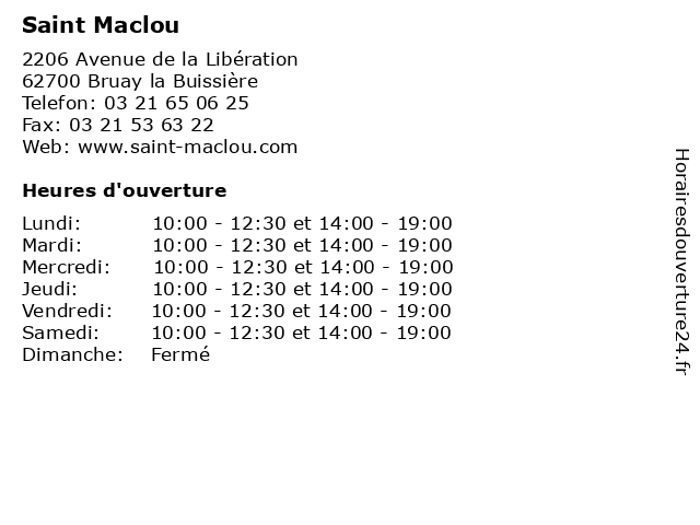 | Samedi | 10:00-12:30 et 14:00-19:00 |