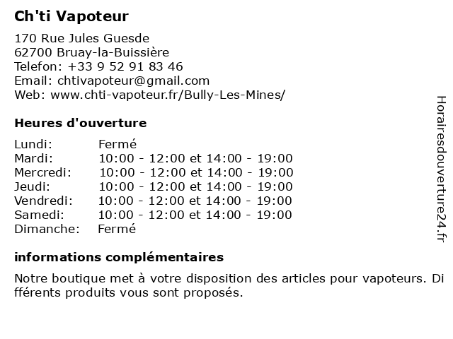 | Mardi | 10:00-12:00 et 14:00-19:00 |