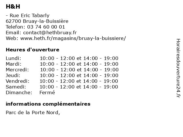 | Samedi | 10:00-12:00 et 14:00-19:00 |