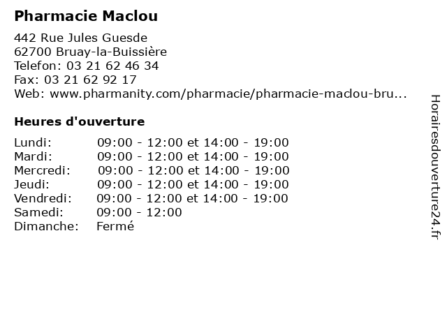 | Mardi | 09:00-12:00 et 14:00-19:00 |