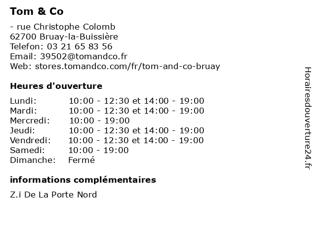 1 Tom&Co Bruay (Distance: 0,27 km) 56 Rue Christophe Colomb, 62700 Bruay-la-Buissière accessoire, animalerie, animalerie bethune, animalerie bruay, animalerie tom&co, arbre à chat, bruay, carte de fidélité, cochon d'inde, croquette chat, croquette chien, fleuriste, gravure - médaille, jardinerie, lapin, lecteur de puce, oiseaux, poisson, test qualité eau, tom&co, tom&co bruay 2 Beers & Co - Bruay-La-Buissière (Distance: 0,85 km) Rue Des Frères Lumière Za De La Porte Nord, 62700 Bruay-la-Buissière bar, beers, bruay, buissière, co, la, restaurant de hamburgers, restaurant français 3 Vape & Co (Distance: 2,92 km) 68 Rue Henri Cadot, 62700 Bruay-la-Buissière boutique, co, e-cigarettes, liquide, vape, électronique 4 Ex & Co - Expertise et Conseil (Distance: 5,49 km) 96 Rue Ludovic Boutleux, 62400 Béthune co, conseil, et, ex, expertise 5 Vape & Co' (Distance: 5,64 km) 20 Rue des Treilles, 62400 Béthune accessoires, boutique, co', e-cigarette, e-liquides, vap, vape 6 Yes and Co (Distance: 5,79 km) 39 Grand Place, 62400 Béthune and, bistrot, brasserie, café, co, restaurant, restauration, yes  |