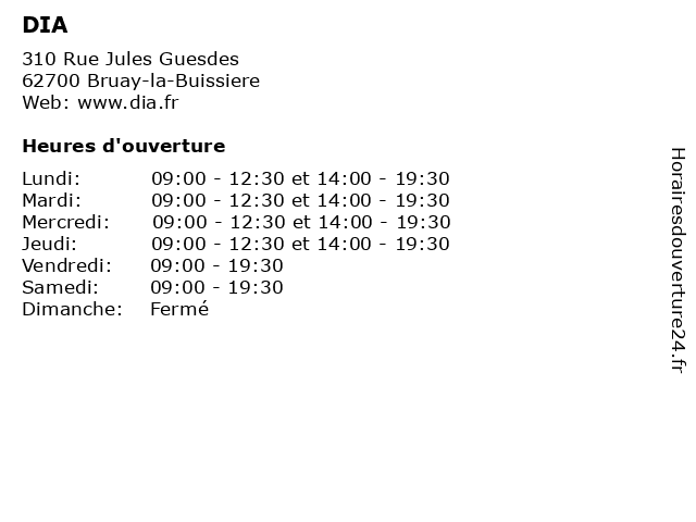 | Mardi | 09:00-12:30 et 14:00-19:30 |