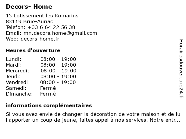 1 Trouillet Decors (Distance: 0,61 km) 689 T chemin de Saint Martin, 83119 Brue-Auriac brue-auriac, béton, ciré, decors, décoration, peinture, trouillet 2 Green Acres - Sarl Votre Home (Distance: 8,39 km) 1017 Chemin De L'auviere, 83470 Saint-Maximin-la-Sainte-Baume acres, agency, agent, apartment, green, home, real estate, sarl, votre 3 4 CONSEILS DECORS (Distance: 46,32 km) 1140 Rue André Ampère, 13290 Aix-en-Provence conseils, decors, linge hôtellerie, linge professionnel, pergolas, rideau anti-feu, rideau hôtel, rideau maison de retraite, store extérieur, équipement hôtelier 6 Green Acres - Sarl La Provence Immobiliere (Distance: 13,87 km) - Escouto Quand Ploou, 83170 Tourves acres, agency, agent, apartment, green, home, immobiliere, la, provence, real estate, sarl |