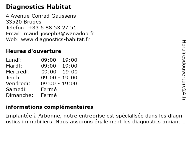 2 EX’IM - Diagnostics Immobiliers (Distance: 3,01 km) 81 Boulevard Pierre Ier, 33110 Le Bouscat centre, diagnostics, diagnostique, ex’im, immobilier, immobiliers, rénovation 3 Agenda Diagnostics 33 Bordeaux, Mérignac (Distance: 4,67 km) 389 Avenue d'Arès, 33200 Bordeaux 33, agenda, bordeaux, diagnostics, mérignac 4 RENOVATION HABITAT SECURITE (Distance: 5,53 km) 20 Rue Jean Francois La Perouse, 33290 Blanquefort habitat, renovation, securite 5 Agenda Diagnostics 33 Agglo Nord-Ouest, Médoc (Distance: 6,56 km) 24 Avenue Descartes, 33160 Saint-Médard-en-Jalles 33, agenda, agglo, diagnostics, médoc, nord, ouest 6 |