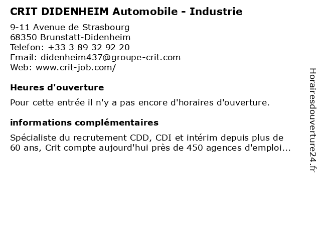 | Appeler CRIT DIDENHEIM Automobile - Industrie | |