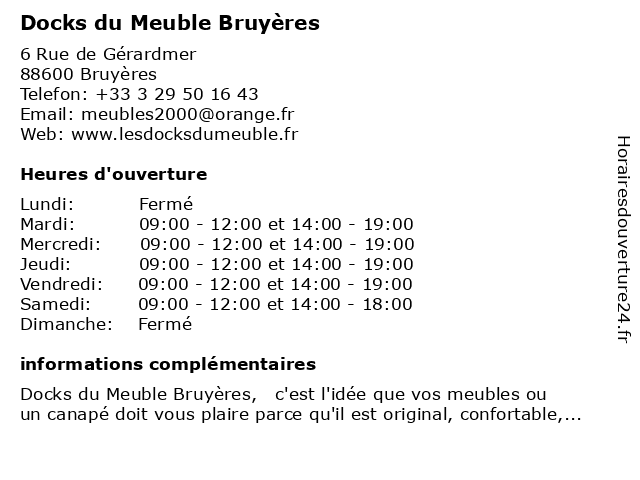 | Mercredi | 09:00-12:00 et 14:00-19:00 |