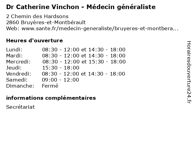 | Lundi | 08:30-12:00 et 14:30-18:00 |