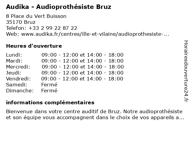 Termes de recherche pour Audika - Audioprothésiste Bruz:appareil auditif, audika, audioprothésiste, bruz, specialiste audition, audiologiste, centre auditif |