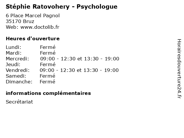 | Mercredi | 09:00-12:30 et 13:30-19:00 |