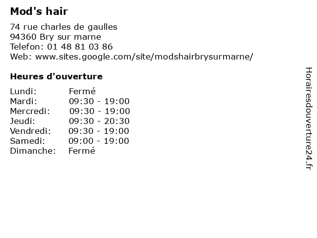 1 Mod's Hair (Distance: 6,75 km) 6-10 rond-point de Montfermeil, 93340 Le Raincy coiffeur, coiffure, coloration, coupe, hair, lissage, mod's, soins 2 Mod's Hair (Distance: 8,63 km) 45 avenue de Saint-Mandé, 75012 Paris coiffeur, coiffure, coloration, coupe, hair, lissage, mod's, soins 3 Mod's Hair (Distance: 14,60 km) 100 Rue Saint Dominique, 75007 Paris coiffure, coupe, esthétique, hair, mod's, salon 4 Mod's Hair (Distance: 16,16 km) 32-34 Rue Marbeuf, 75008 Paris coiffure, coupe, esthétique, hair, mod's, salon 5 Mod's Hair (Distance: 16,78 km) 4 avenue Pierre 1er de Serbie, 75016 Paris coiffeur, coiffure, coloration, coupe, hair, lissage, mod's, soins 6 Mod's Hair (Distance: 16,93 km) 12 avenue de Wagram, 75008 Paris coiffeur, coiffure, coloration, coupe, hair, lissage, mod's, soins |