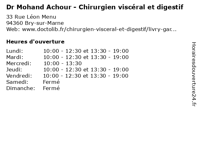| Lundi | 10:00-12:30 et 13:30-19:00 |