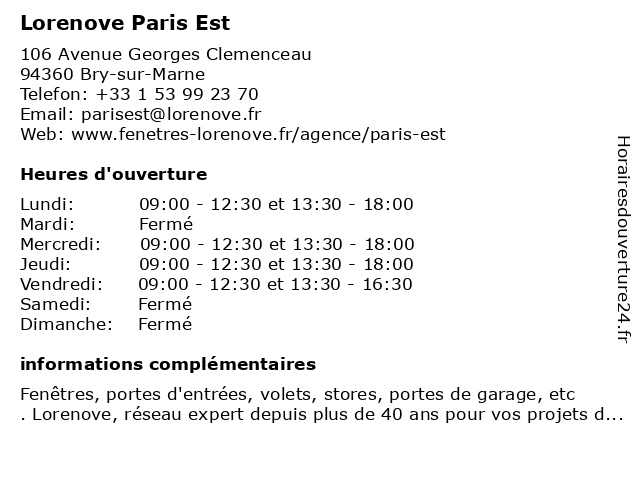 | Lundi | 09:00-12:30 et 13:30-18:00 |