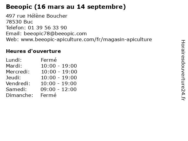 1 Beeopic (15 septembre au 15 mars) (Distance: 0,00 km) 497 rue Hélène Boucher, 78530 Buc 15, apicole, apiculture, au, beeopic, magasins, mars, materiel, septembre 2 Cimetière - Mai à Septembre (Distance: 1,00 km) - Rue de l'Egalité, 78530 Buc caveau, cimetière, de, défunts, funéraire, mai, municipal, septembre, service 3 Guichard - Hiver - du 1er mars au 30 avril (Distance: 2,13 km) - Avenue Guichard, 78000 Versailles 1er, 30, arbre, au, avril, du, espace vert, forêt, guichard, hiver, jardin, loisirs, mars, nature, parc, prairie, square 4 La Martinière - Hiver - du 1er mars au 30 avril (Distance: 2,39 km) - Rue de la Martinière, 78000 Versailles 1er, 30, arbre, au, avril, du, espace vert, forêt, hiver, jardin, la, loisirs, mars, martinière, nature, parc, prairie, square 5 Jardin Borgnis Desbordes - Hiver - du 1er mars au 30 avril (Distance: 3,33 km) - Rue Borgnis Desbordes, 78000 Versailles 1er, 30, arbre, au, avril, borgnis, desbordes, du, espace vert, forêt, hiver, jardin, loisirs, mars, nature, parc, prairie, square 6 Cimetière Communal - Octobre à Mars (Distance: 3,44 km) - Rue Saint-Roch, 78350 Jouy-en-Josas 31, au, caveau, cimetière, communal, du, défunts, funéraire, mars, municipal, octobre, service |