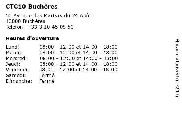 | Mardi | 08:00-12:00 et 14:00-18:00 |
