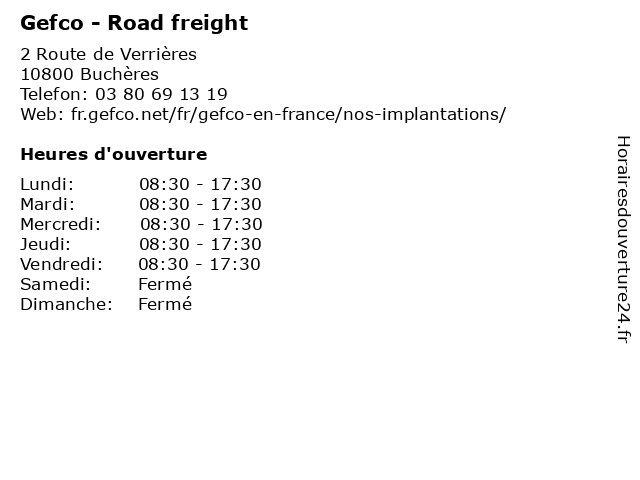 | Samedi | Fermé |