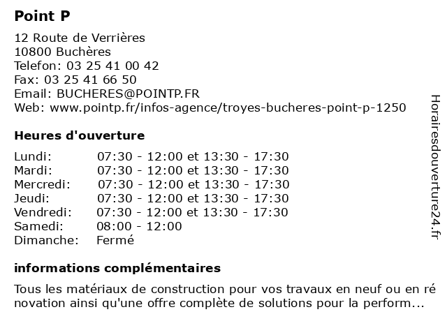 | Lundi | 07:30-12:00 et 13:30-17:30 |