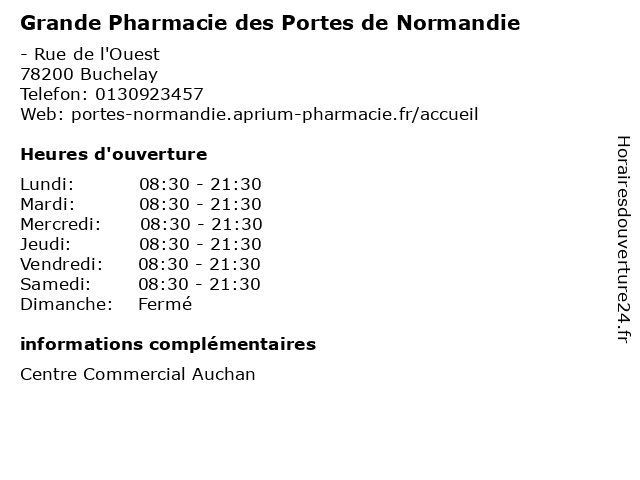 | 1 Aprium Pharmacie des Portes de Normandie (Distance: 0,36 km) Rue de l'Ouest, 78200 Buchelay aprium, de, des, normandie, pharmacie, portes 2 La Grande Récré (Distance: 1,48 km) . Rue du Lot, 78200 Buchelay enfants, figurines, grande, jeux, jeux videos, jouets, la, loisirs, poupées, récré, éducatif 3 Le Relais De Normandie (Distance: 2,12 km) 24 Rue De Metz, 78200 Mantes La Jolie normandie, restaurants 4 Communauté de communes - Les Portes de l'Ile de France (Distance: 9,94 km) . Rue Solange-Boutel, 78840 Freneuse administration, communauté, communes, de, france, l'ile, l'île, les, portes, services publics 5 Nicolas les Portes d'Aubergenville (Distance: 12,48 km) Avenue de la Division Leclerc, 78410 Aubergenville champagnes, d'aubergenville, les, liqueurs, nicolas, portes, rhums, rosé, ruinart, spiritueux, vins, vodka, whiskies 6 Grande Pharmacie Lafayette de Bréval (Distance: 12,58 km) 33 Rue René Dhal, 78980 Bréval bréval, conseils, de, grande, homéopathie, lafayette, médicaments, pharmacie |