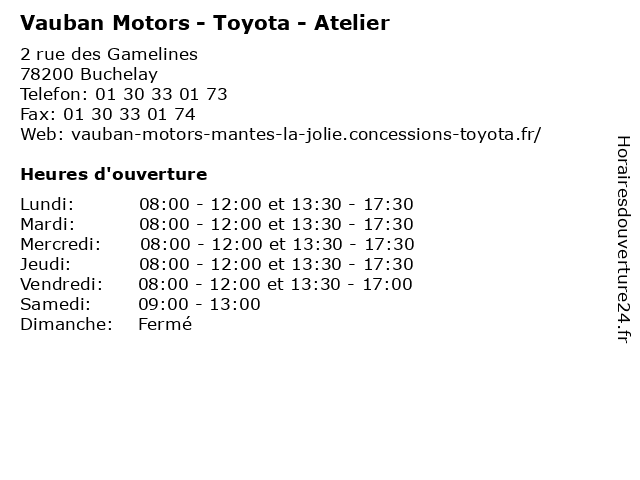 1 Vauban Motors - Toyota - Service commercial (Distance: 0,00 km) 2 Rue des Gamelines, 78200 Buchelay accessoires, automobile, carrosserie, commercial, entretien, garage, motors, pièces, réparation, service, toyota, vauban, vente, vidange 2 Mitsubishi Motors (Distance: 0,26 km) 5 Avenue de la Garonne, 78200 Mantes La Jolie accessoires, atelier, automobiles, garage, mitsubishi, motors, motos - concessionnaire 3 Mitsubishi Motors (Aprés Vente) (Distance: 0,26 km) 5 Avenue de la Garonne, 78200 Mantes La Jolie accessoires, aprés, atelier, automobiles, garage, mitsubishi, motors, motos - concessionnaire, vente 4 Renault Retail Group ( Atelier mécanique) (Distance: 1,74 km) 6 Rue de l'Ouest, 78711 Mantes-La-Ville atelier, automobiles, garage, group, motos - concessionnaire, mécanique, renault, retail 5 L'Atelier Coiffeurs (Distance: 1,74 km) . Rue de L´Ouest, 78200 Buchelay beaute, boutiques, cache, chaussures, coiffeurs, deco, enfants, l'atelier, mode femme, mode hommes, restaurant, sport 6 Renault Retail Group (Atelier Carrosserie) (Distance: 6,23 km) . Route Ouest, 78711 Mantes La Ville atelier, automobiles, carrosserie, garage, group, motos - concessionnaire, renault, retail |