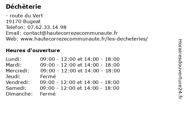 | Samedi | 09:00-12:00 et 14:00-18:00 |