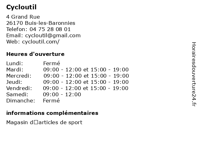 | Mardi | 09:00-12:00 et 15:00-19:00 |