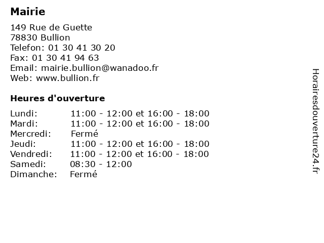 | Mardi | 11:00-12:00 et 16:00-18:00 |