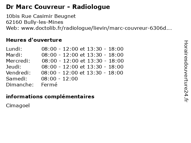 | Mercredi | 08:00-12:00 et 13:30-18:00 |