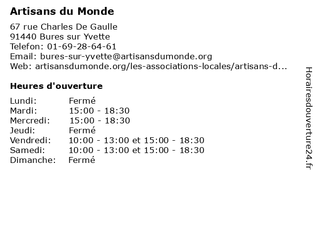 | Samedi | 10:00-13:00 et 15:00-18:30 |
