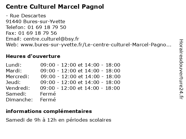 1 Médiathèque - Centre culturel Georges Brassens (Distance: 3,75 km) 5 bis rue de Palaiseau, 91400 Saclay brassens, cd audio, cd.rom, centre, culturel, georges, livres, médiathèque, revues 2 Centre Culturel Jacques Brel (Distance: 5,29 km) - Rue Jacques-Brel, 91440 Villebon-sur-Yvette activités, brel, centre, culturel, jacques, Évènements 3 Centre Social et Culturel (Distance: 9,51 km) 4 Boulevard des Pyrénées, 92160 Antony activités, centre, culturel, d’antony, et, famille, social 4 Marcel Verniservices (Distance: 9,85 km) 84 Rue Berlioz, 78140 Vélizy-Villacoublay marcel, verniservices 6 Le Centre Culturel De La Biere (Distance: 12,55 km) 26 Rue d Enfer, 91240 St Michel Sur Orge biere, centre, culturel, restaurants |