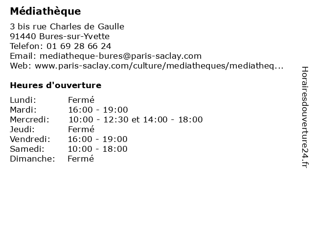 | Mercredi | 10:00-12:30 et 14:00-18:00 |