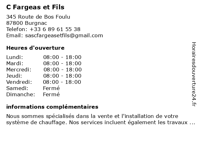 | Samedi | Fermé |