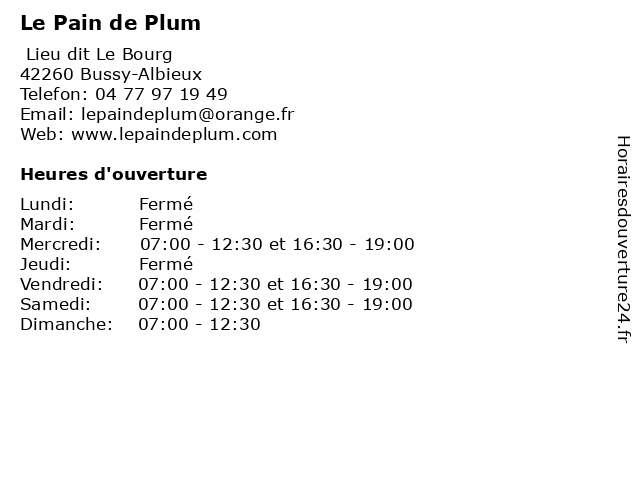 | Lundi | Fermé |