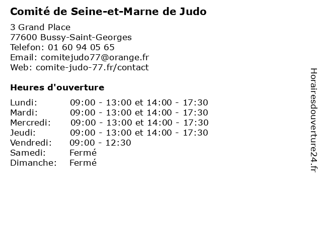 | Jeudi | 09:00-13:00 et 14:00-17:30 |