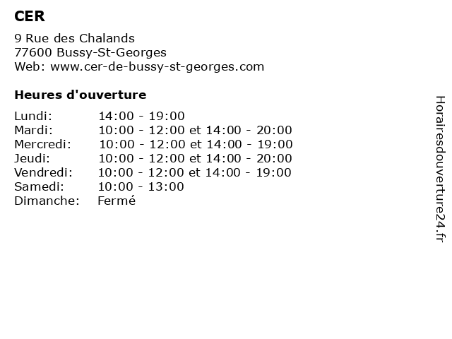 | Mercredi | 10:00-12:00 et 14:00-19:00 |