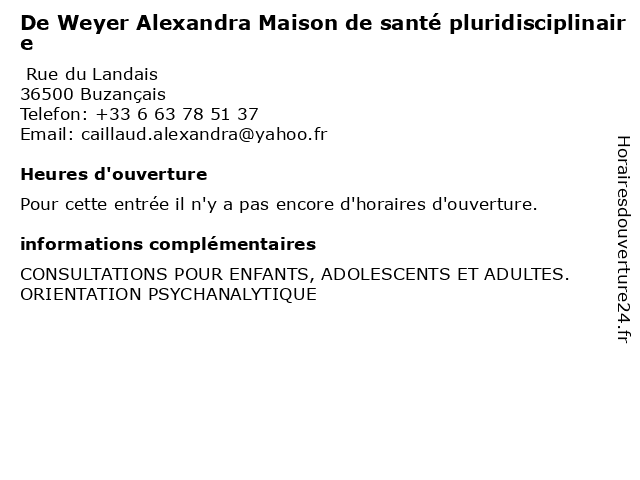 Appeler De Weyer Alexandra Maison de santé pluridisciplinaire | |