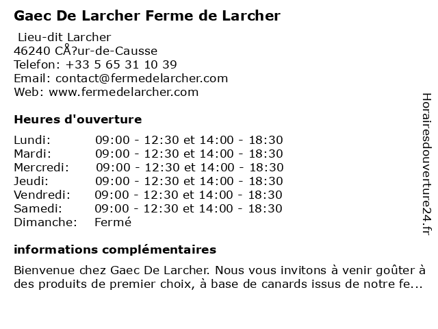 | Samedi | 09:00-12:30 et 14:00-18:30 |