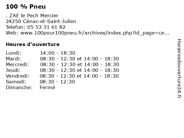 | Mardi | 08:30-12:30 et 14:00-18:30 |